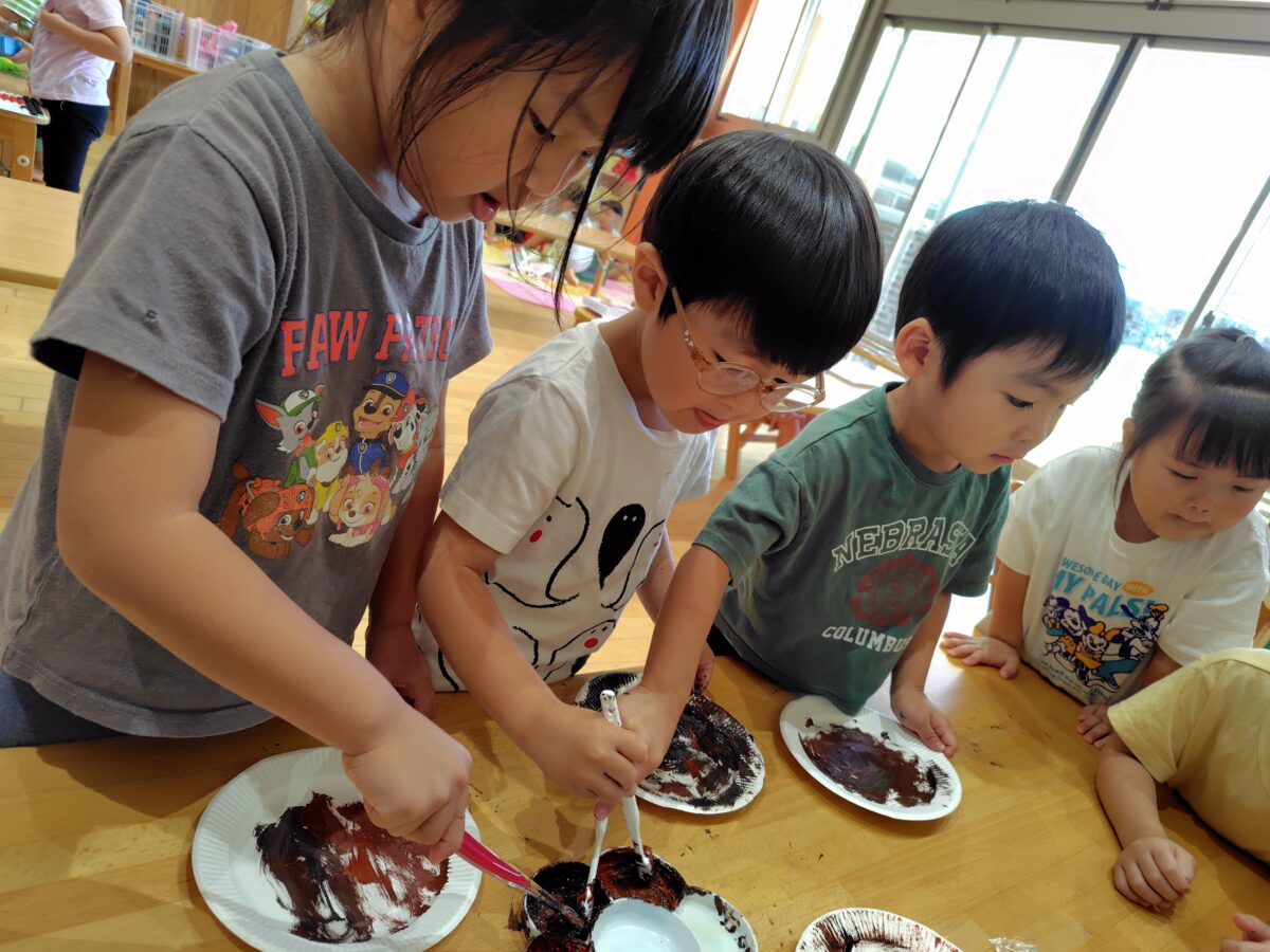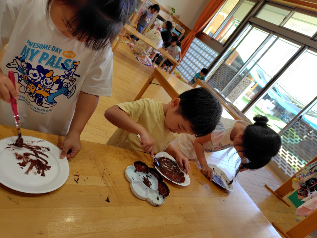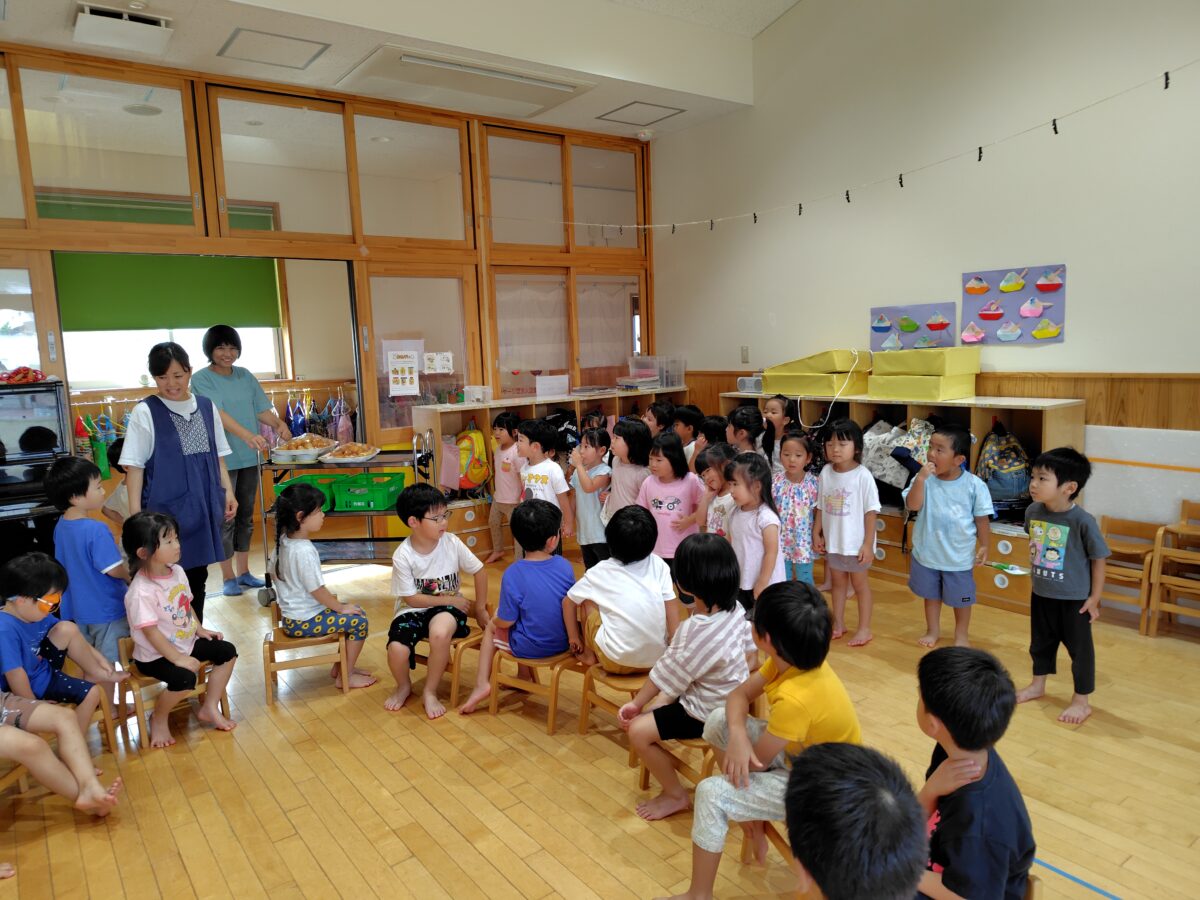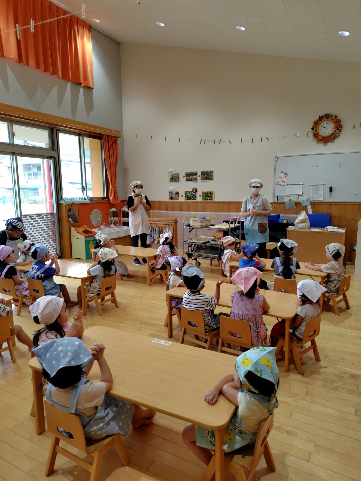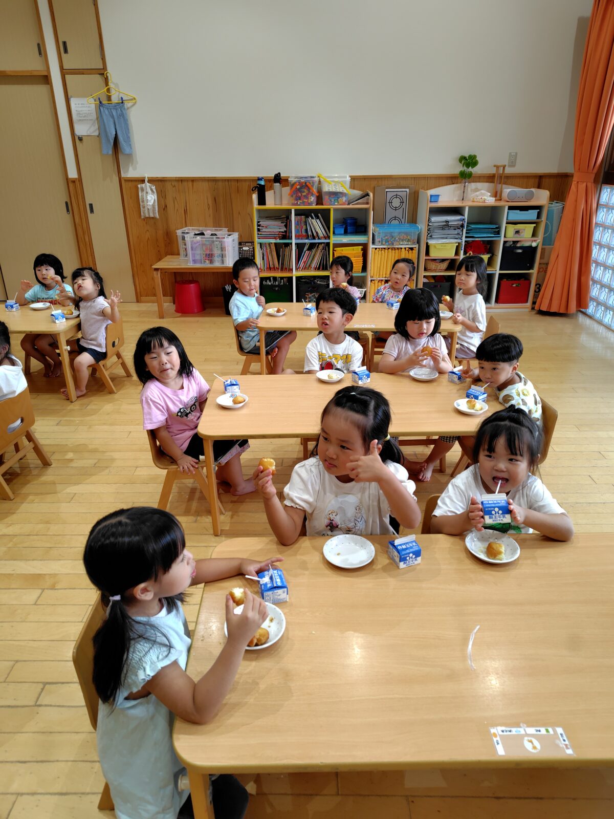 おやつの時間には、各クラスに「食べてください!」と、みんなで届けました。