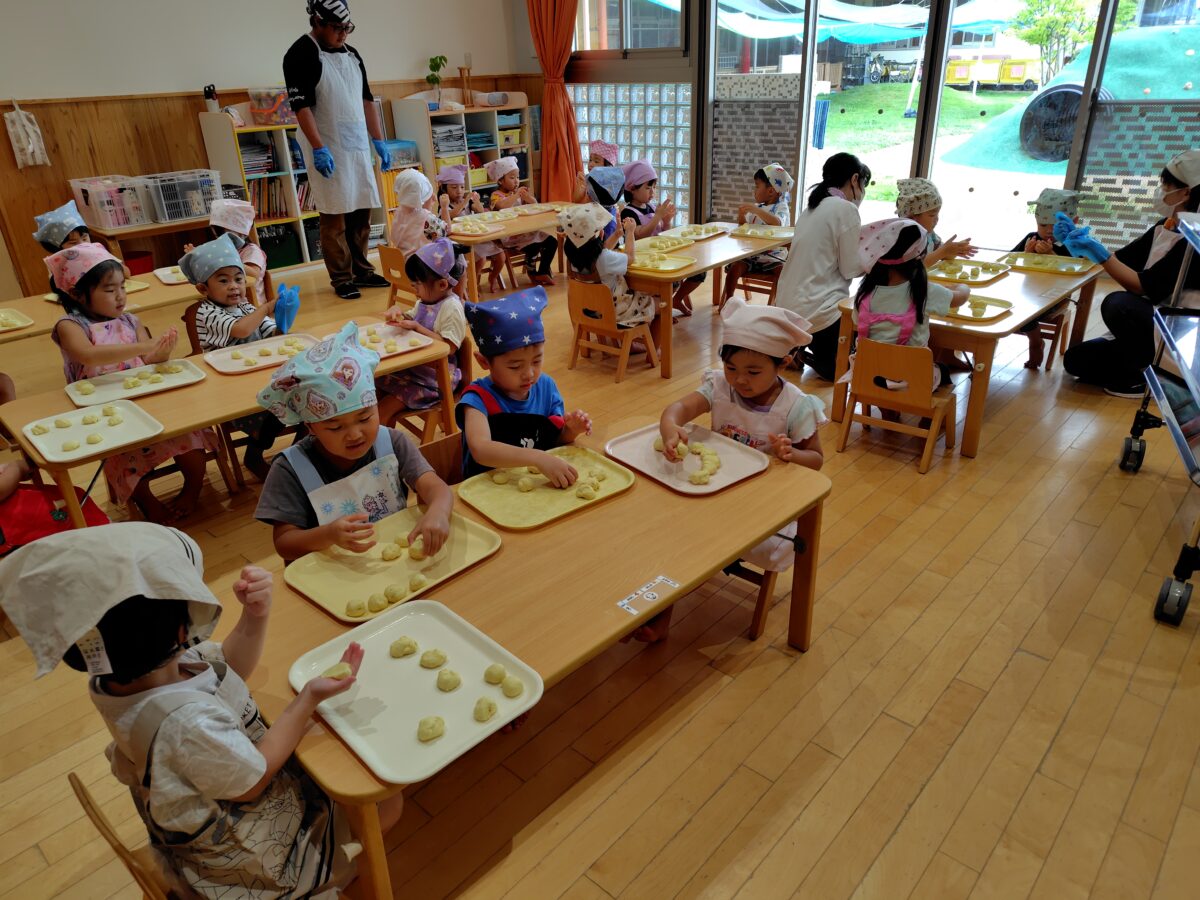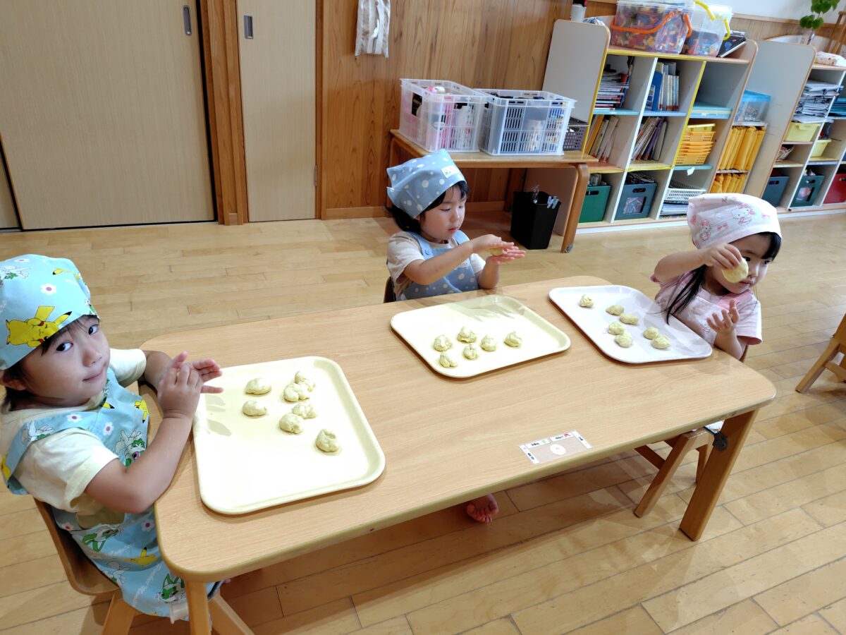 粘土遊びが大好きな子どもたちは、喜んで生地を丸めていきます。