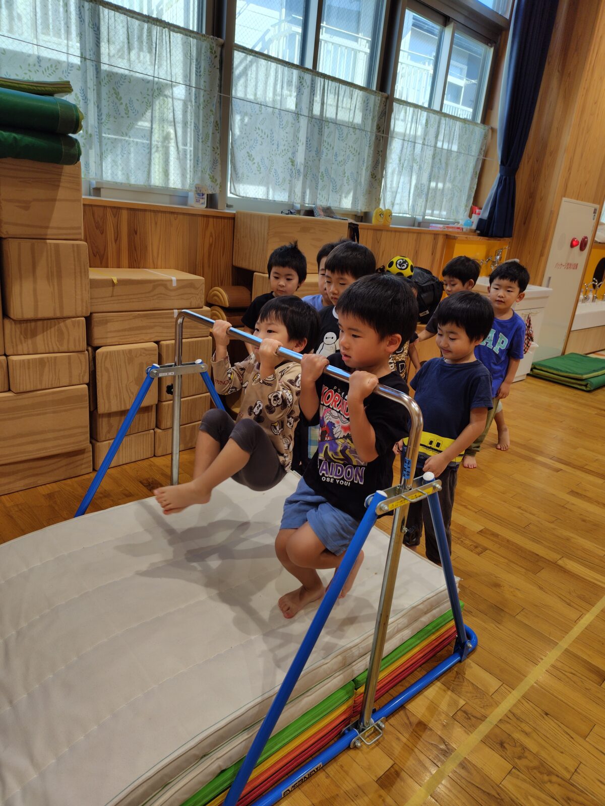 体育遊びでは、鉄棒やブリッジ、縄跳び等を教えてもらいました。