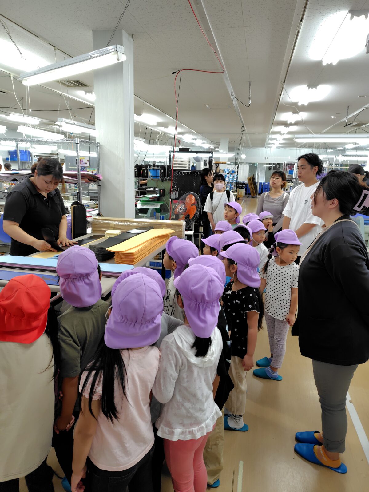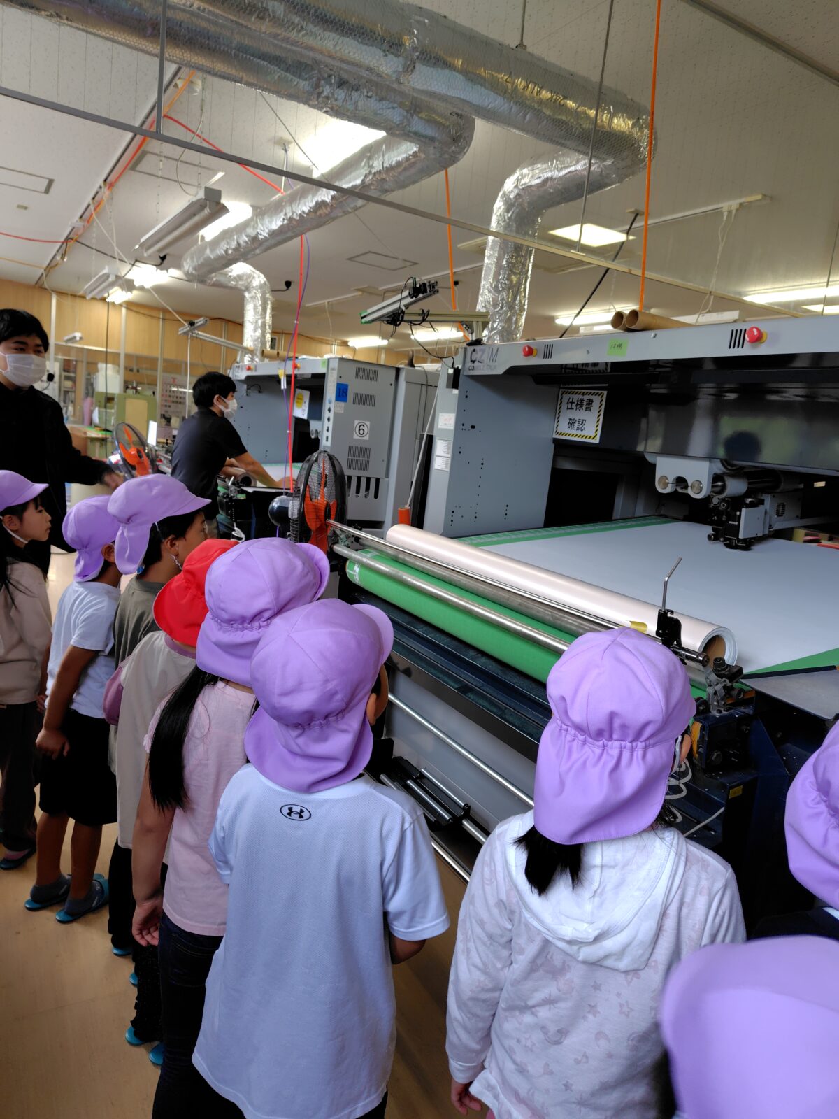 大きなミシンで縫っている工程などを見せてもらい、子ども達も興味津々!!