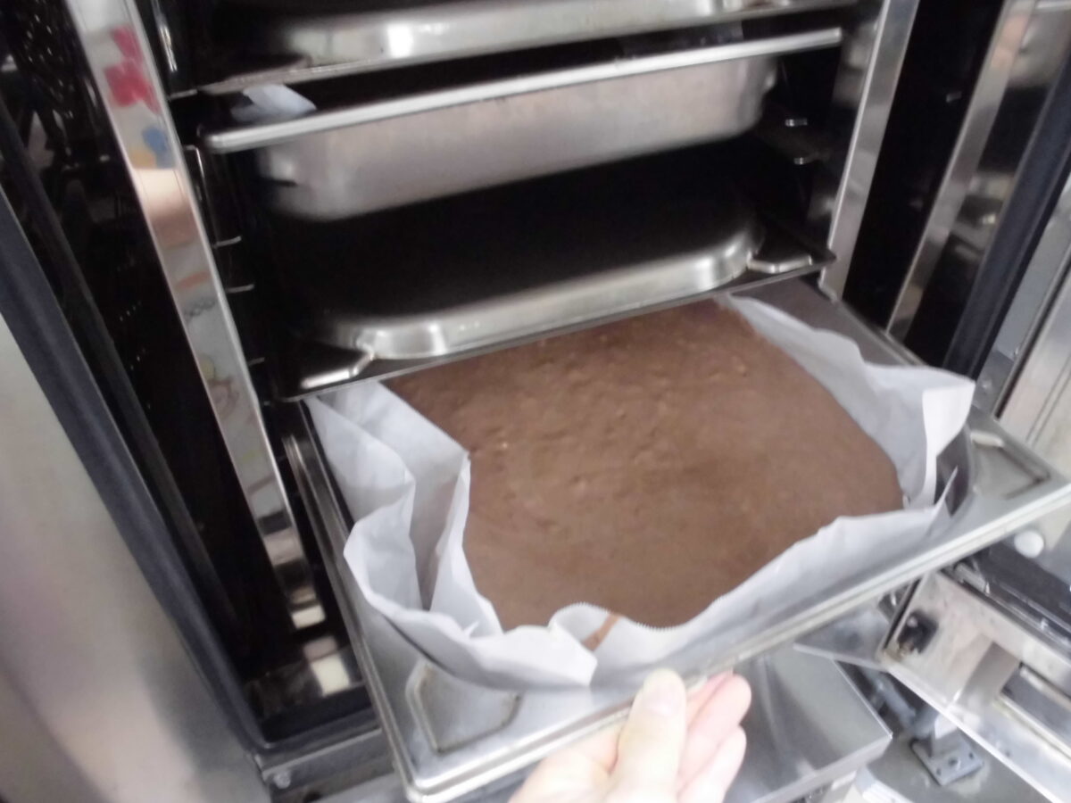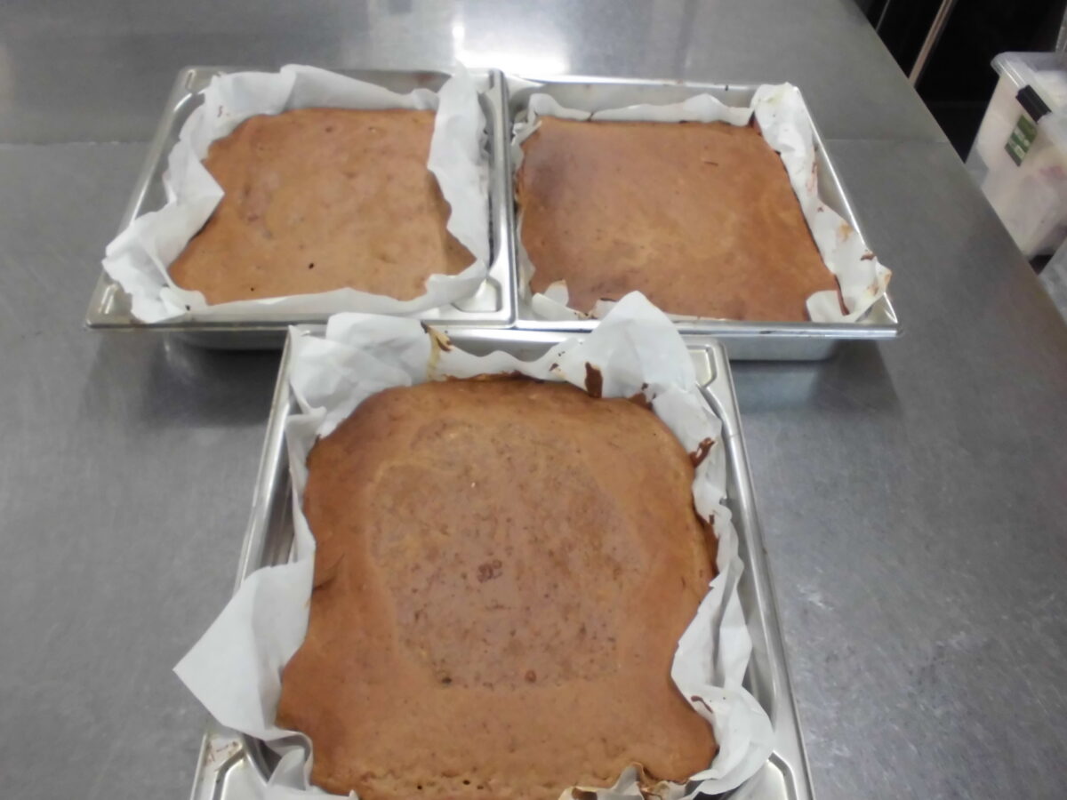バナナをつぶし、生地をまぜ、バットにうつして焼きました。