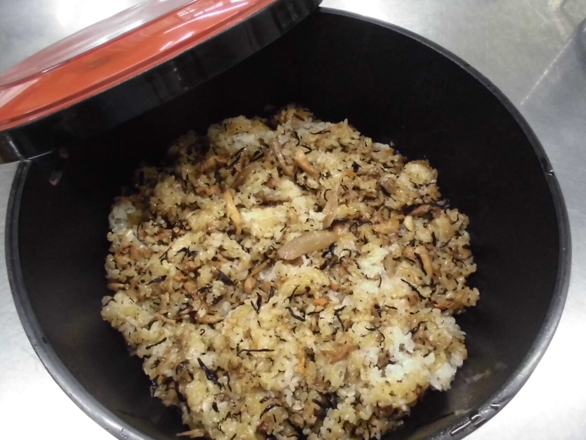 秋の旬の食材きのこがたくさん入った五目ぶかしは