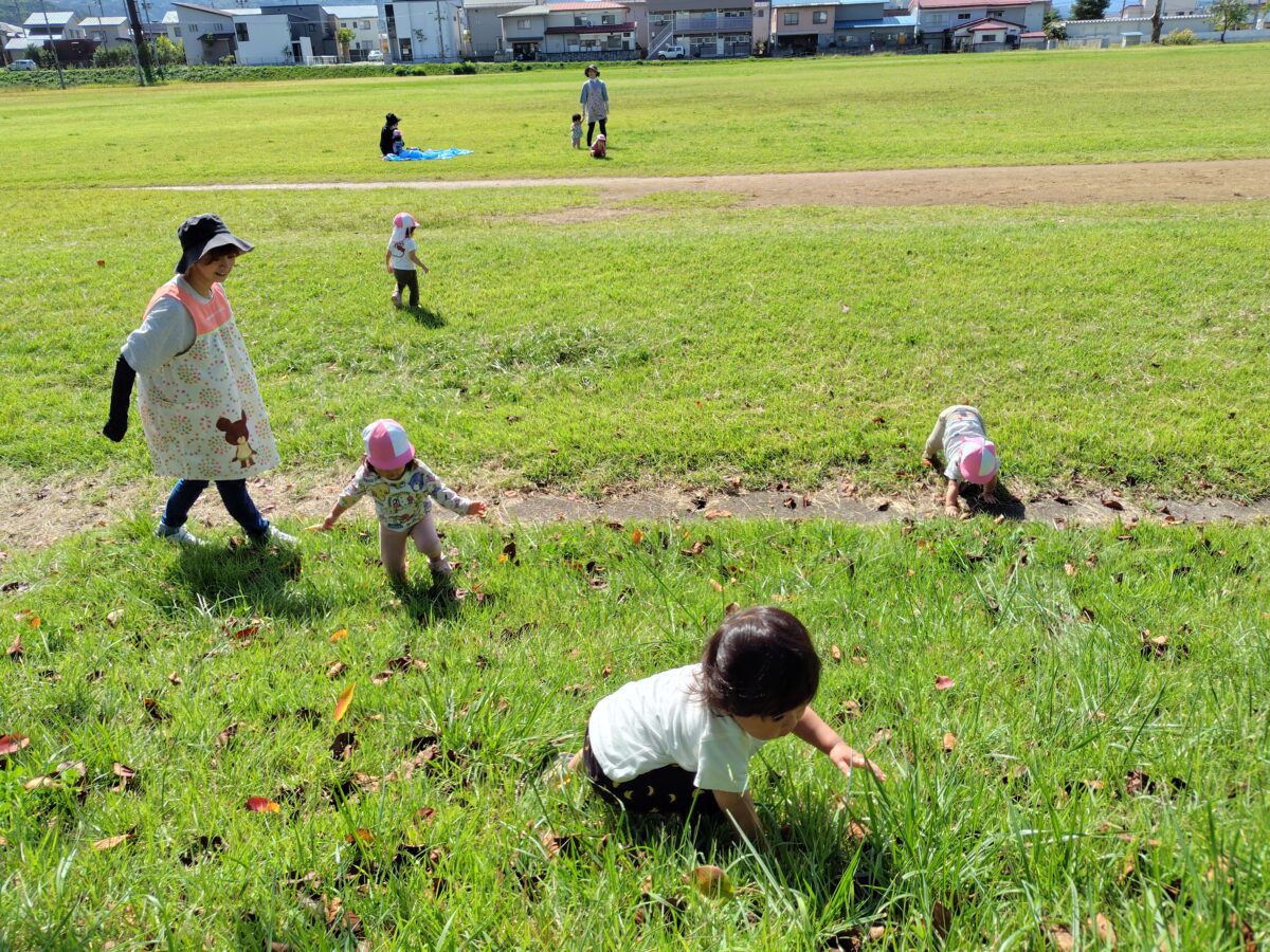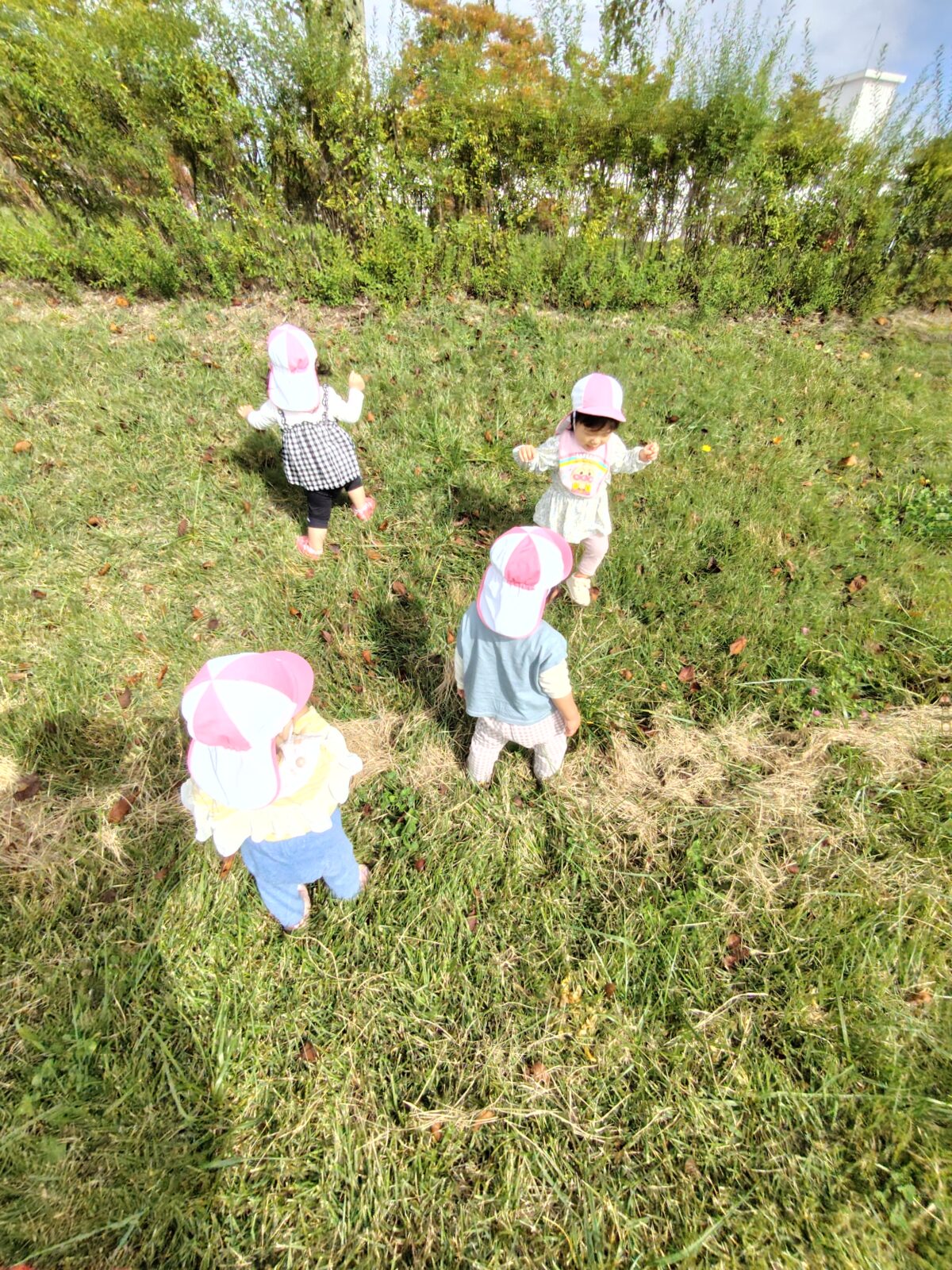 芝生を歩いたり、走ったりのびのび遊んでいます。