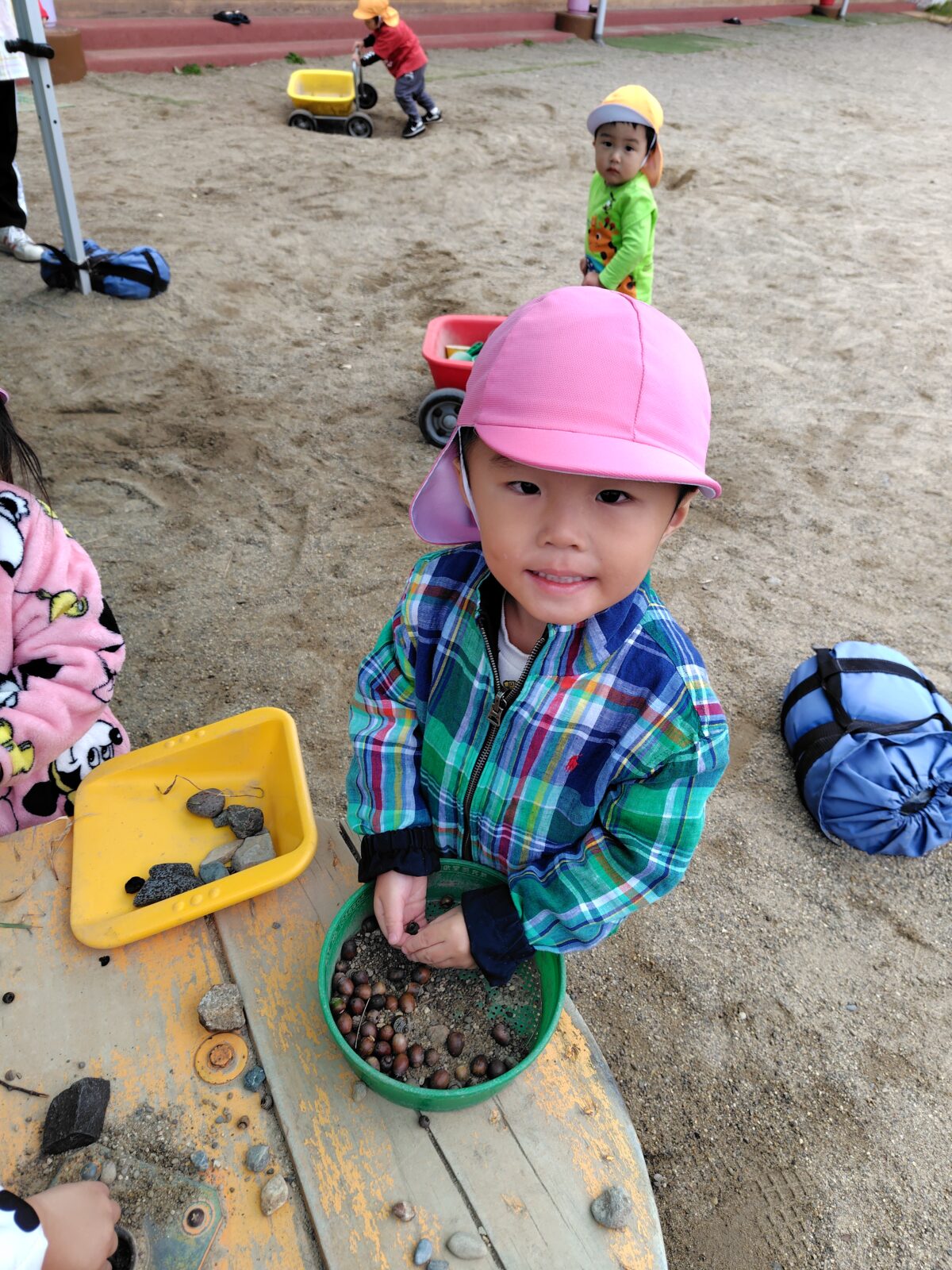 散歩先で見つけてきたどんぐりを使って、ハンバーグやカレーを作ってくれたり、