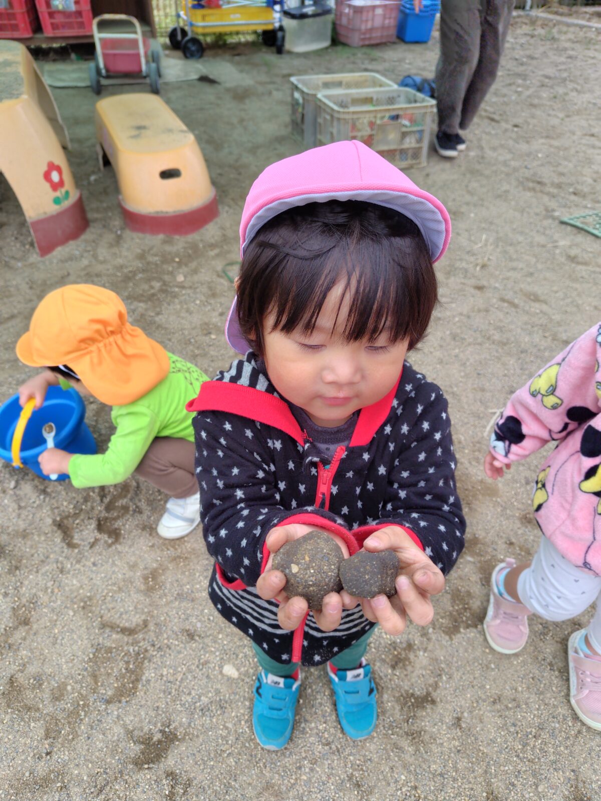 教えてもらったりしながら、泥だんごづくりも楽しんでいます。