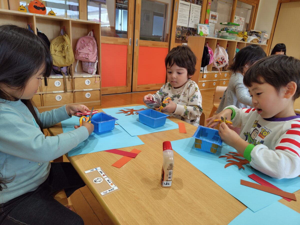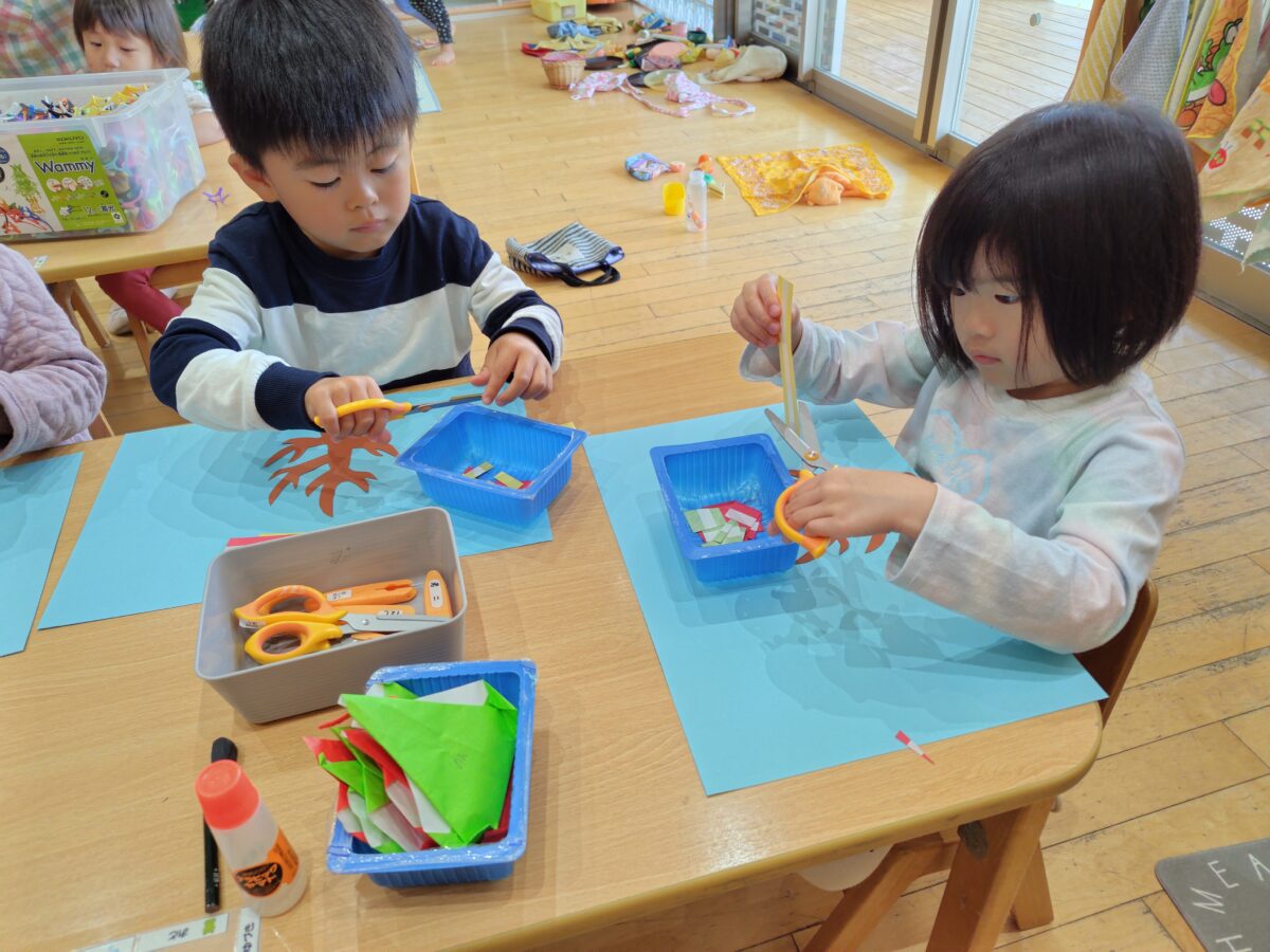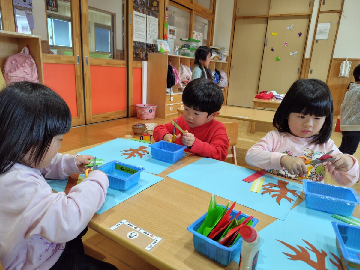 11月の製作は、ほし組になって二回目のハサミを使った製作。