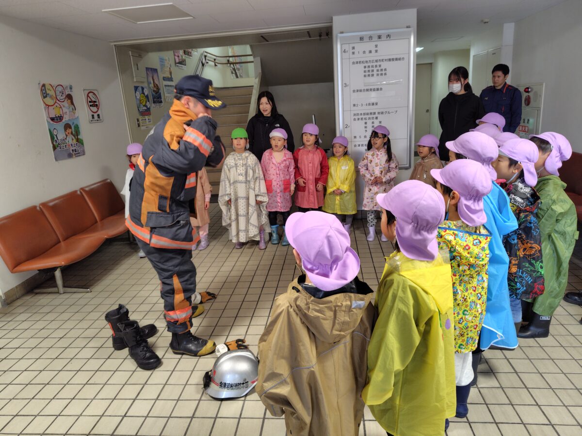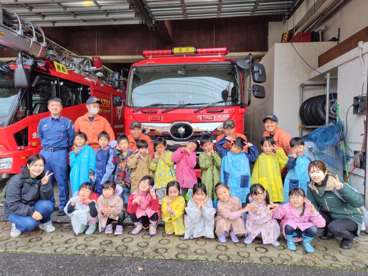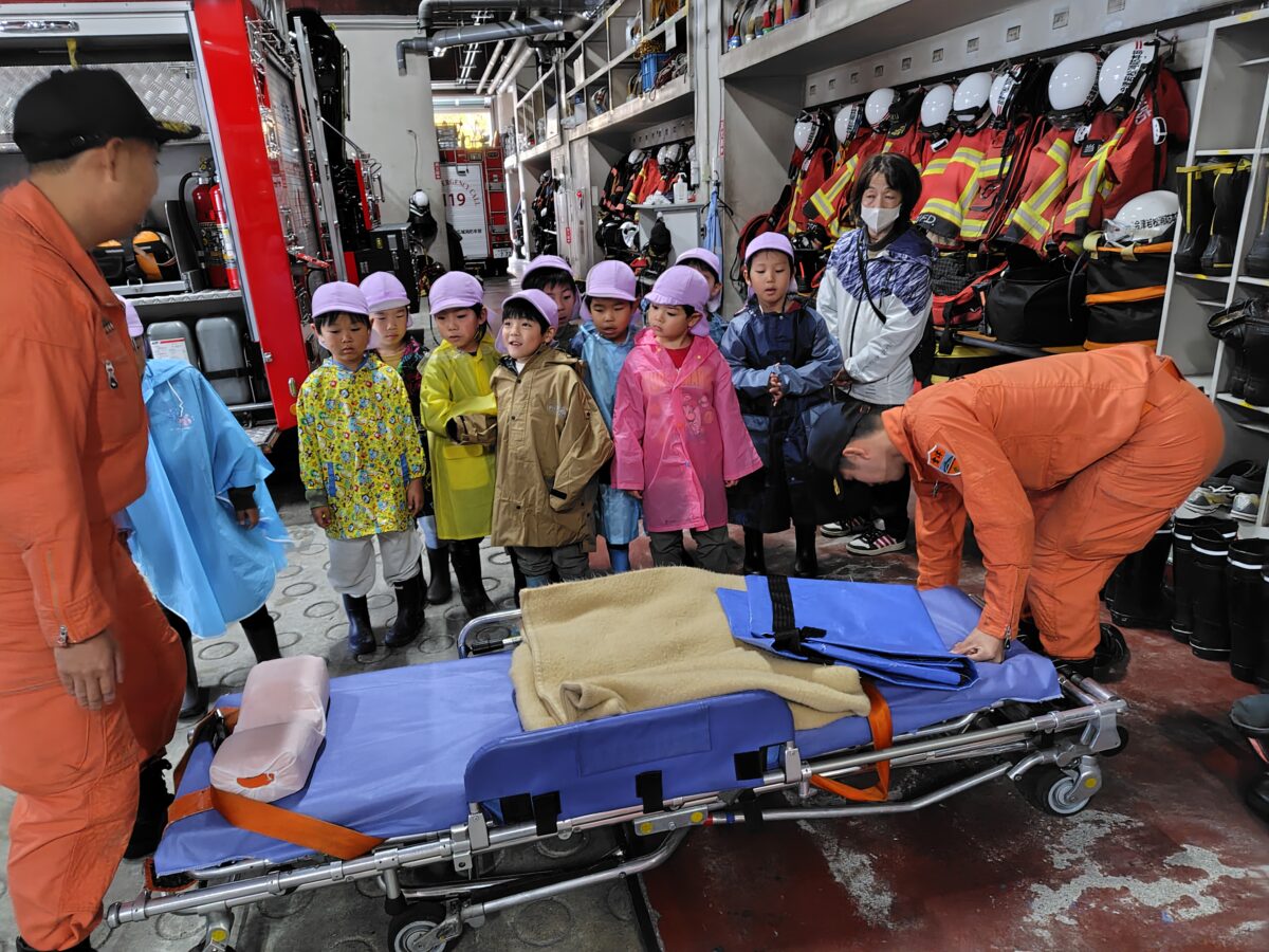 消防署内を見学したり、消防車、救急車の装備品を見せてもらったりと、