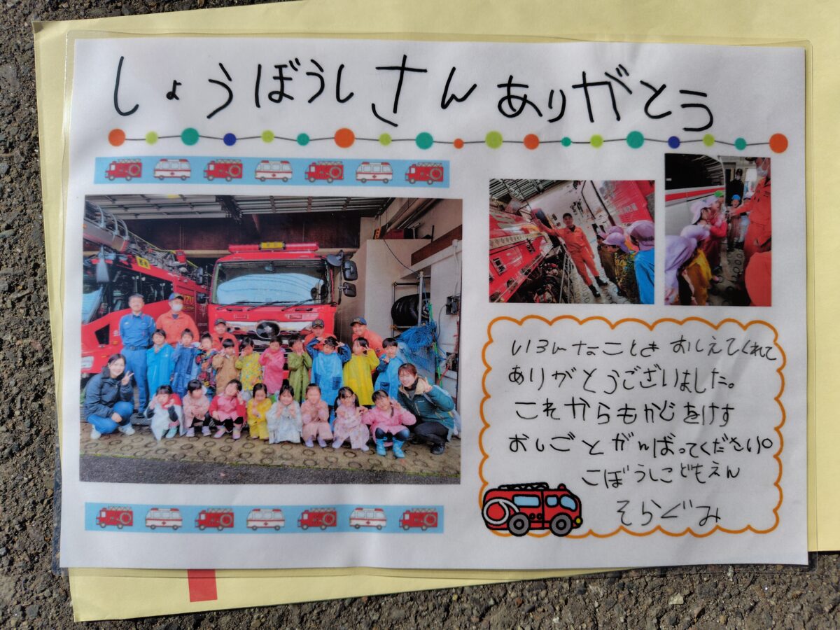 数日後、消防士さんへの感謝の手紙を渡してきました。