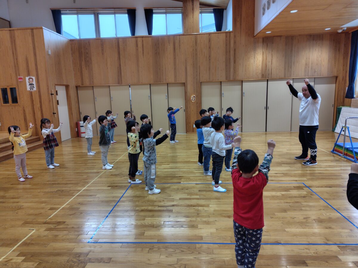 園庭遊びでは、みんなでだるまさんが転んだをしたり