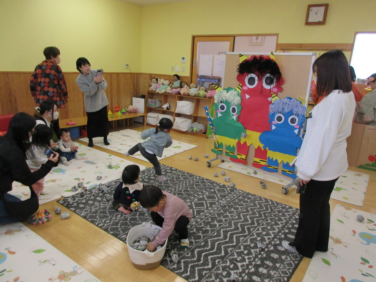 園の集会に参加した後、豆まきを行いました。
