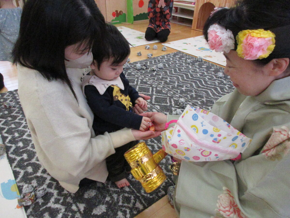 元気に鬼をやっつけた後は福の神の登場。