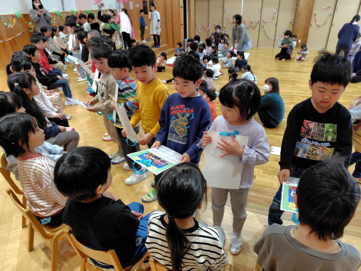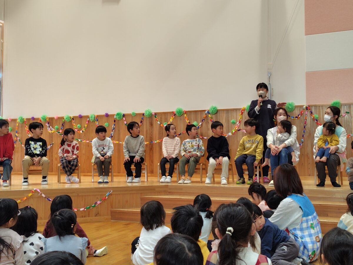 お別れの先生からのご挨拶、そら組さんからのお別れの言葉や歌をみんなで聞き、