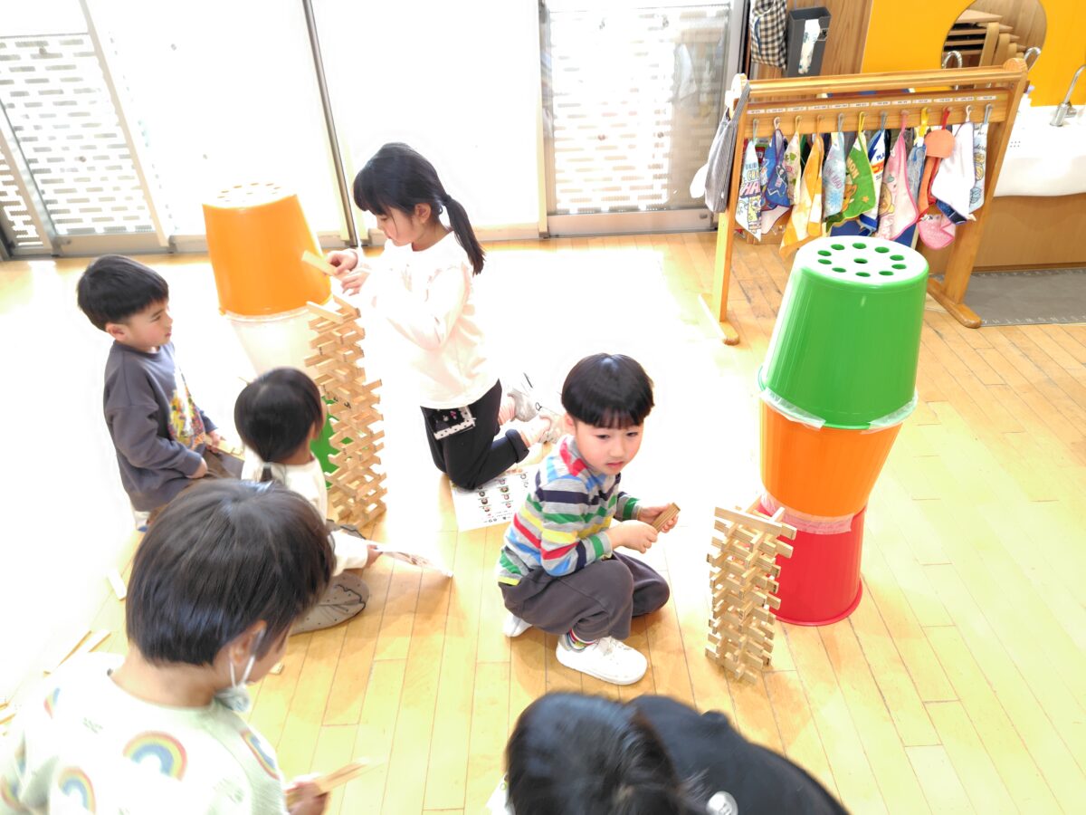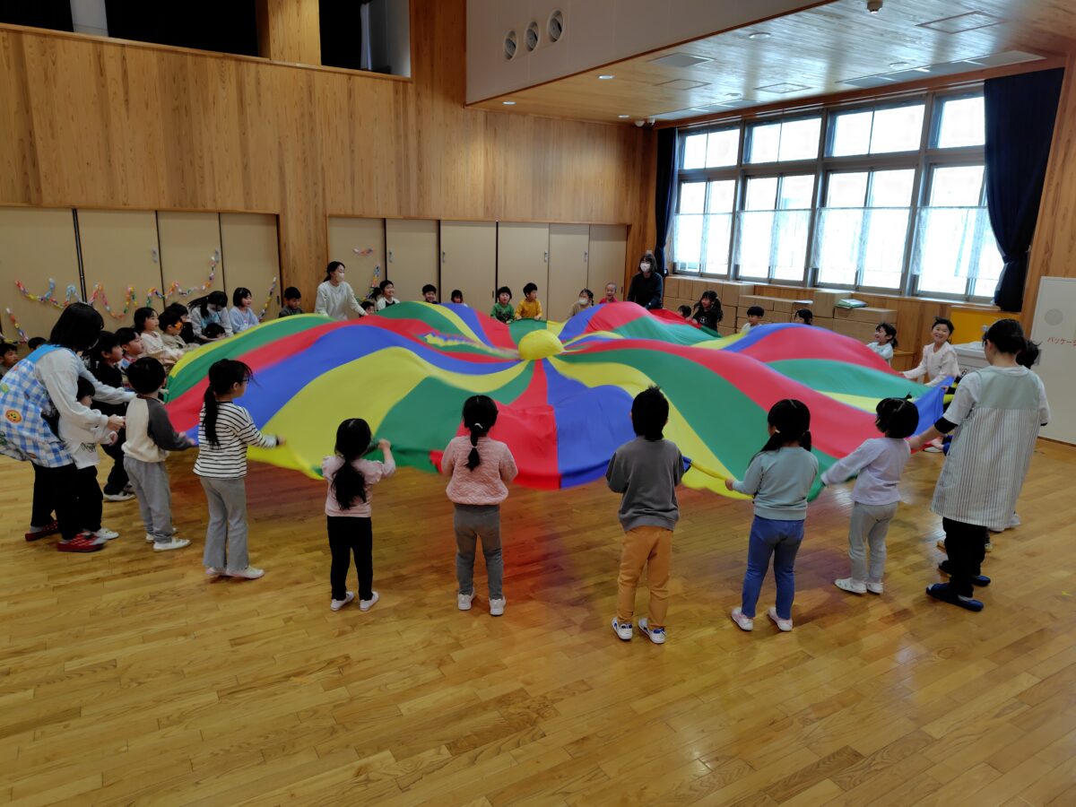 ほし組、つき組、そら組3クラス合同でバルーンとシールラリーをしました。